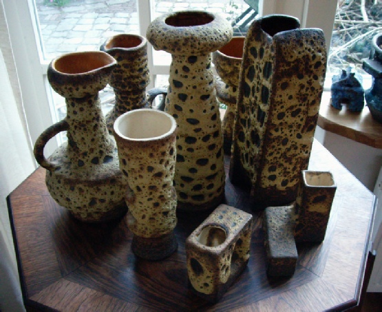 One of the great delights of the recent Fat Lava exhibition in Amsterdam (a blog entry is on its way) was putting faces to names of many fellow collectors who I’ve got to know over the years via email. Once such collector is Els van Petersen. Els and I first got in contact when I found a Dutch studio pottery vase with a paper label reading ‘van Woerden’, and put it in a Miller’s Collectibles Price Guide. “Do you know anything about them?“, Els asked me by email. “Only a little bit…”, I replied. Els had a number of van Woerden pieces in her collection and, being intelligent and inquisitive like most collectors are, wanted to find out much more. Little did she know that the journey would take her to places as close as Monster and Gouda in the Netherlands, and as far away as Ontario in Canada!